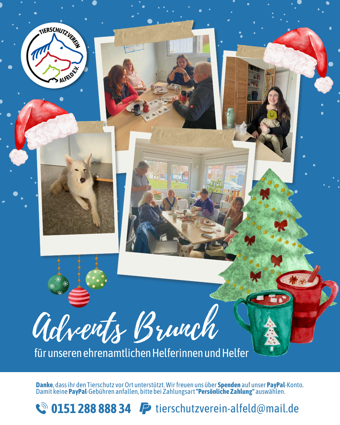 Am vergangenen Sonntag haben wir mit unseren ehrenamtlichen Helferinnen und Helfern einen gemütlichen Adventsbrunch veranstaltet. Bei einem leckeren Frühstücksbuffet und vielen schönen Gesprächen rund um den Tierschutz haben wir gemeinsam ein paar wunderbare Stunden verbracht. Ein herzliches Dankeschön an alle, die dabei waren und sich das ganze Jahr über für unsere Tiere einsetzen