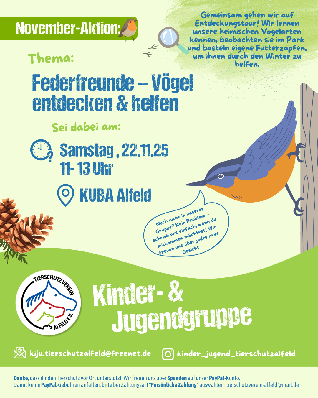 Kinder- und Jugendgruppe/November-Aktion: Entdecke mit uns die Welt der Vögel! [...]