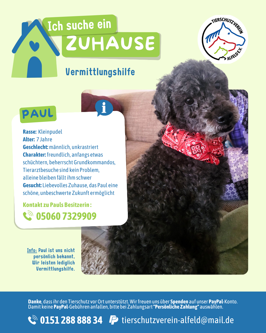 Kleinpudel Paul sucht ein neues Zuhause Der 7-jährige Kleinpudel Paul [...]