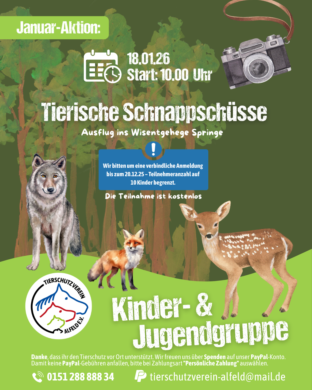 👉 Verbindliche Anmeldung bis spätestens 20.12.25 über Instagram oder per E-Mail: kiju.tierschutzalfeld@freenet.de
