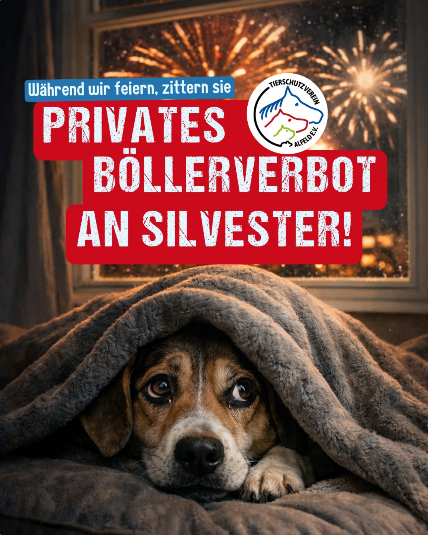 🧨Ohrenbetäubender Lärm, Brandgeruch und grelle Lichtblitze versetzen Haus-, Wild- und Nutztiere oft tagelang in extremen Stress und Panik: Hunde zittern und verweigern die Futteraufnahme; Katzen fliehen und finden nicht mehr nach Hause; Pferde verletzen sich bei Fluchtversuchen; Vögel fliegen in Todesangst solange durch die Luft, bis sie vor Erschöpfung sterben.