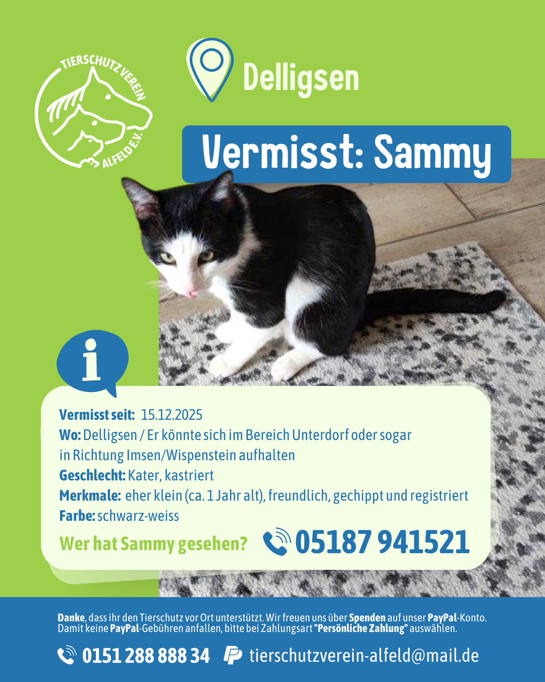 Wer hat Sammy seit Dezember gesehen oder ihn vielleicht bei sich aufgenommen?