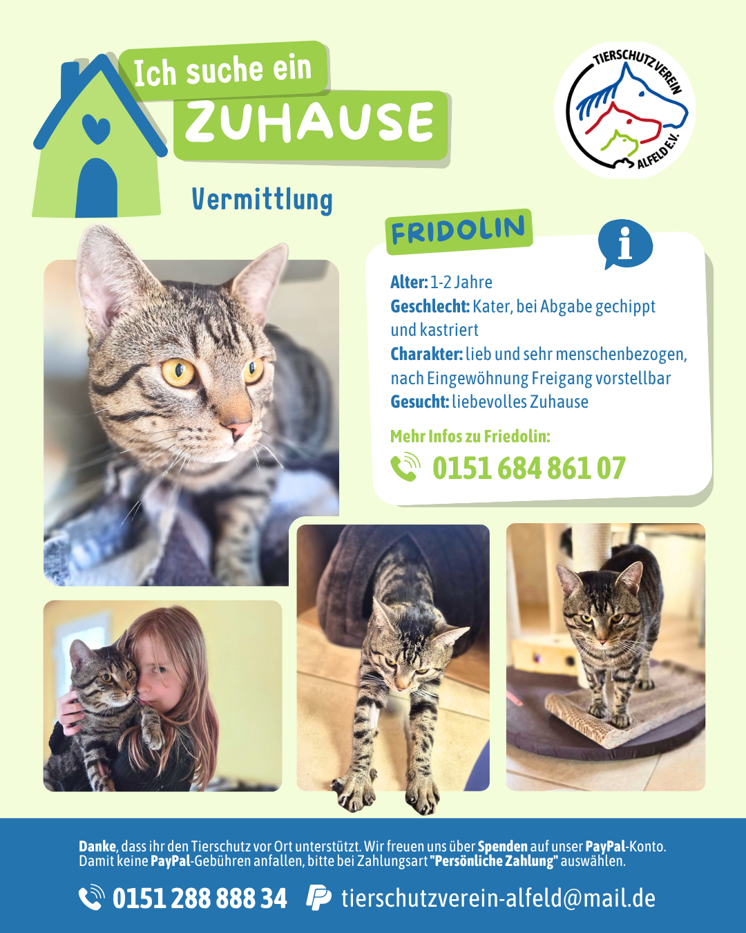 🐾 Zuhause gesucht für Fridolin 🏡💚
